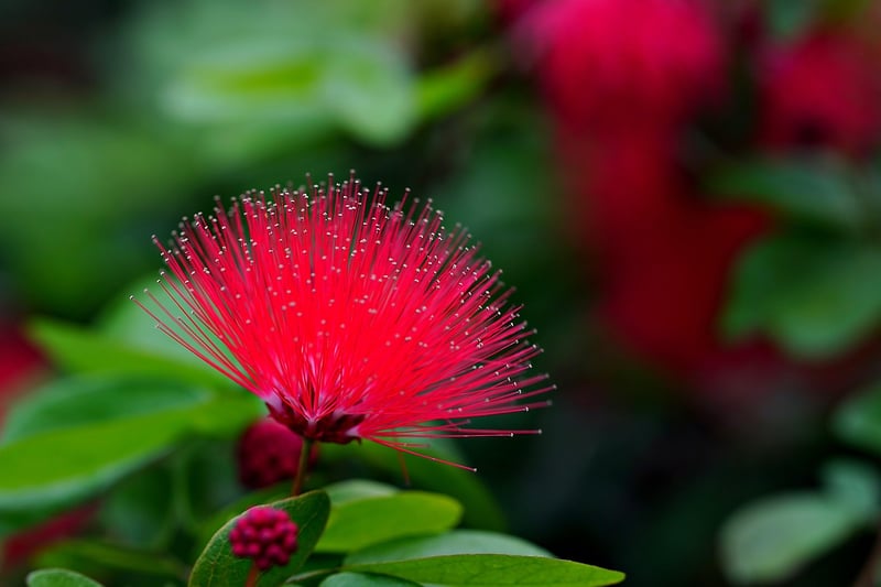 The Fairy Duster plant produces fluffy pink or red flowers that attract hummingbirds and butterflies, making it a favorite in fairy gardens. Its delicate blooms and feathery foliage evoke a sense of enchantment and charm.
